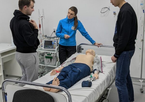Детальний моніторинг та діагностика порушень ритму, ЕКГ в 12-ти відведеннях у постраждалого. Разом з сертифікованим інструктором учасники дискутують, щоб зрозуміти краще матеріал.
