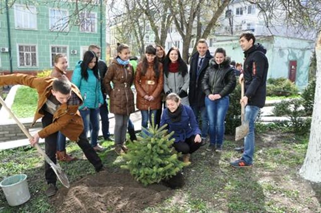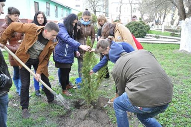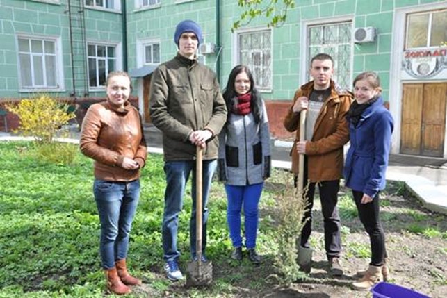 У внутрішньому дворику адміністративного корпусу Тернопільського державного медичного університету імені І.Горбачевського студенти 13 і 29 групи другого курсу медичного факультету 22 квітня висадили 45 унікальних дерев, зокрема кипарисовий лавсон, оцтове дерево, гінкго дволопатеве, гібіскус, ялину колючу блакитну, самшит, ялівець козацький.