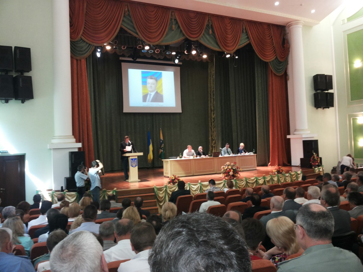 На початку засідання голова з’їзду, ректор КНТЕУ Мазаракі Анатолій Антонович зачитав привітання Президента України Порошенка Петра Олексійовича учасникам зібрання.
