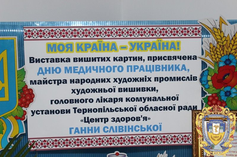 У рамках відзначення Дня медичного працівника у фойє конференц-зали Університетської лікарні була репрезентована персональна виставка «Моя країна – Україна» заслуженого лікаря України, головного лікаря КУТОР «Центр здоров’я» Ганни Слівінської.