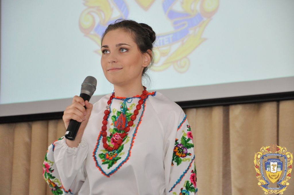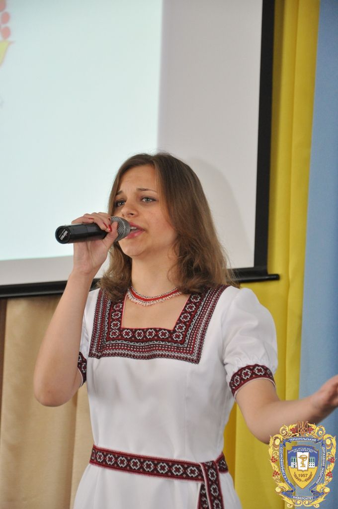 Перед привітанням голови Тернопільської обласної ради профспілок Андрія Присяжного з піснею «В ріку перероста дзвінкий ручай» виступила студентка п’ятого курсу медичного факультету Людмила Папінко.