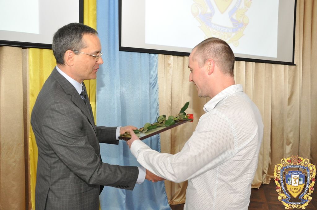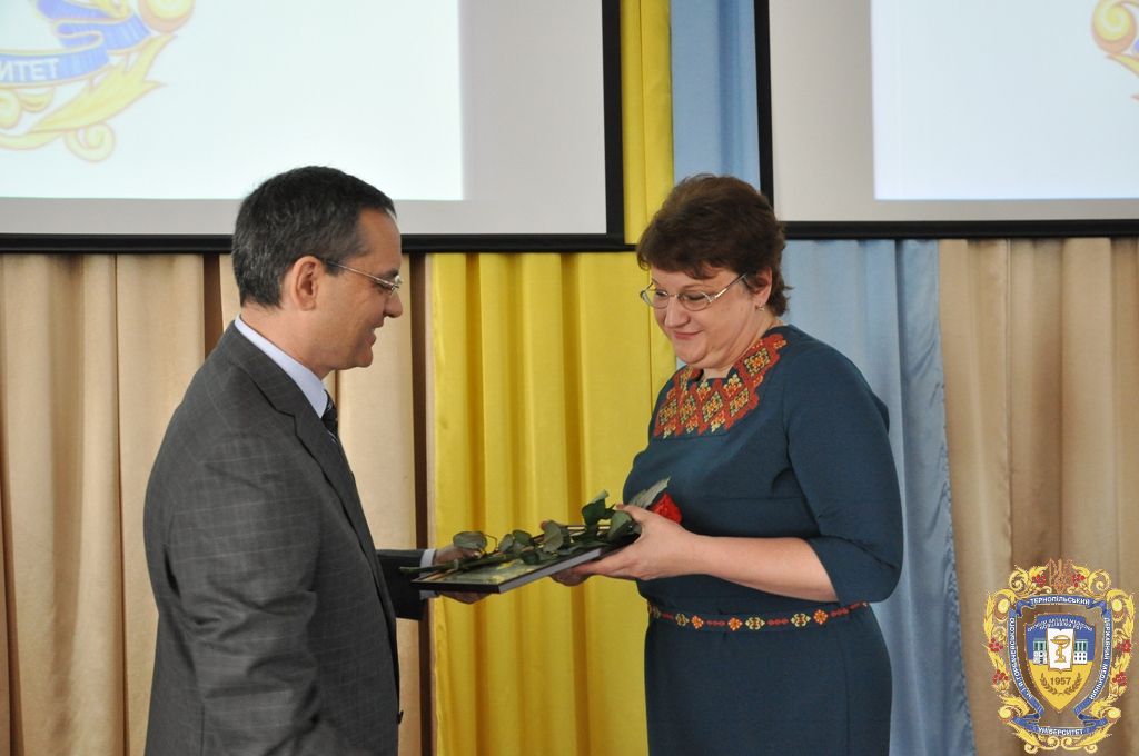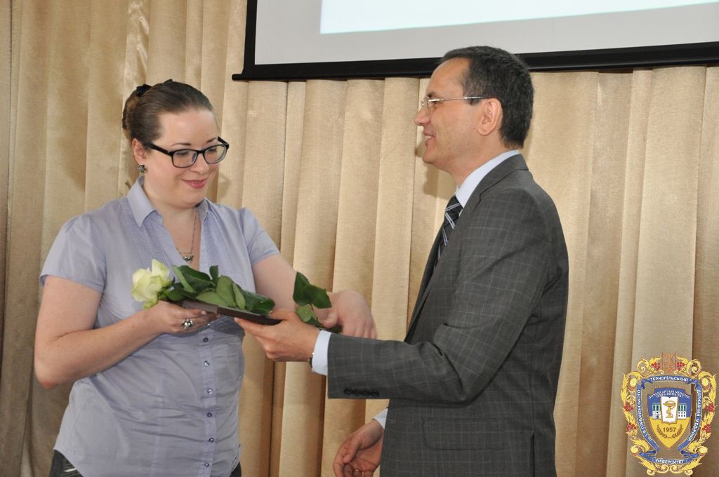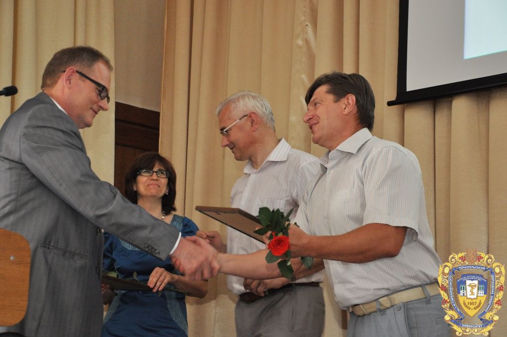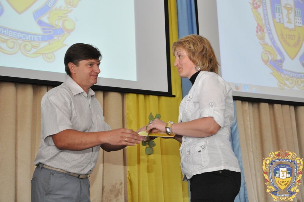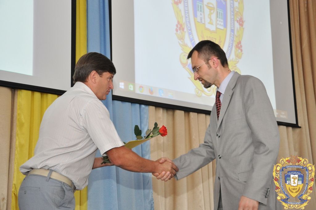 Андрій Володимирович побажав працівникам ТДМУ миру і добра, наголосив на важливості професії лікаря. Грамотами обласної ради профспілок з нагоди Дня медичного працівника він відзначив доцента кафедри фармакогнозії з медичною ботанікою Іванну Керничну, доцента кафедри медичної біохімії Оксану Острівку, доцента кафедри анатомії людини Бориса Ремінецького, доцента кафедри дитячих хвороб Віру Синицьку, доцента кафедри педіатрії№2 Вікторію Фурделу.