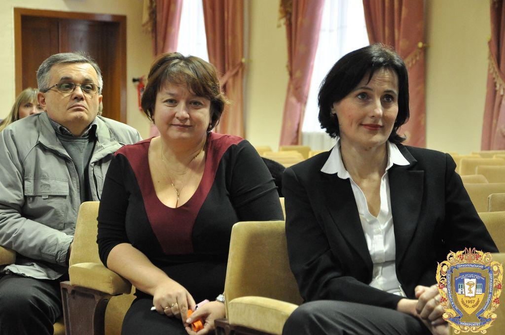 Декан медичного факультету, професор Оксана Боярчук розповіла аудиторії про свої враження від стажування в університеті Арістотеля (м. Салоніки, Греція), а координатор програми ERASMUS MUNDUS MEDEA, професор Олександра Олещук заохотила усіх присутніх бути сміливішими та активнішими в подачі заявок на отримання грантів.