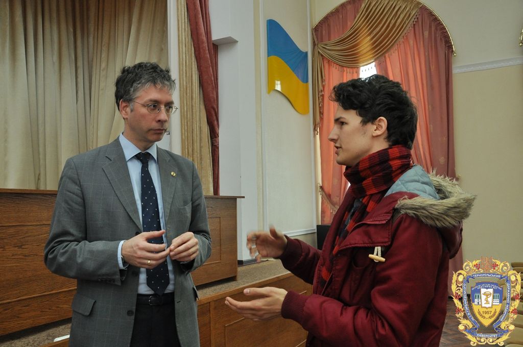 Упродовж 23-24 лютого в Тернопільському державному медичному університеті імені І.Горбачевського провідний фахівець в галузі мікробіології та імунології інфекційних захворювань, зокрема, туберкульозу, професор Тімо Ульріхс з університету Аккону у Берліні (Німеччина) прочитав викладачам і студентам лекції на актуальну медичну тематику. Професор Ульріхс працював у Федеральному міністерстві охорони здоров’я Німеччини і має великий досвід з питань організації охорони здоров’я. Сьогодні він є консультантом посадовців нашого Міністерства охорони здоров’я. Досвід Німеччини у подоланні туберкульозу є актуальним і корисним для України. Німецьким лікарям вдалося зробити все можливе в плані діагностики і лікування цього захворювання, в результаті чого ця країна має найнижчі показники по кількості хворих на туберкульоз.