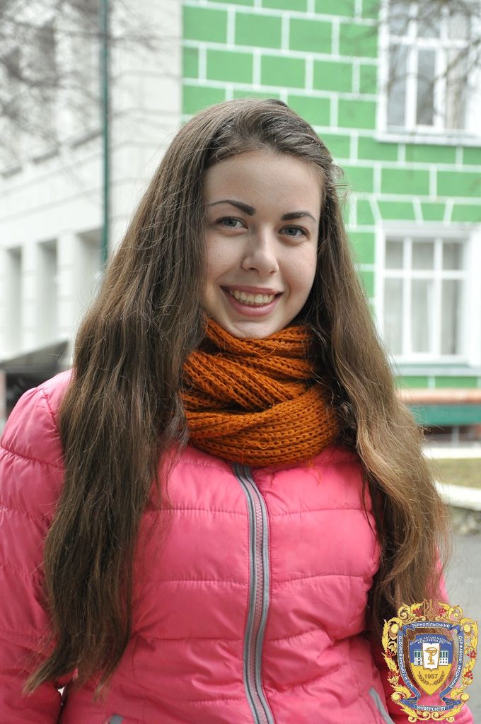 – У моїй сім’ї я буду першим медиком, а ось педагоги є. Мама – вчитель математики. Тато працює в сільському господарстві. Обоє підтримали моє прагнення стати лікарем, бо бачили, з яким запалом я вивчаю біологію, хімію, мріючи продовжити навчання в медуніверситеті. Документи подала в провідні медичні виші України : Київський, Вінницький, Чернівецький медуніверситети і в ТДМУ, про який мріяла найбільше, бо чула дуже гарні відгуки про наш університет від людей, які тут навчалися. Нині дуже задоволена своїм вибором. У ТДМУ чудові викладачі, які дають і теоретичні, і практичні знання, оцінювання – об’єктивне, для студентів створені гарні умови для навчання. Є все для успішного навчального процесу.