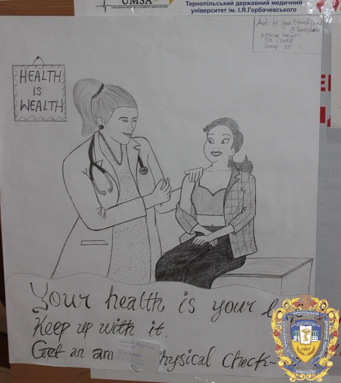 У Тернопільському державному медичному університеті мені І.Горбачевського з нагоди Всесвітнього дня здоров’я Студентська рада організувала акцію творчих робіт «ТДМУ обирає здоров’я». В її рамках іноземні студенти нашого університету намалювали низку творчих робіт, присвячених темі здоров’я. Виставку цих малюнків можна побачити в холі четвертого поверху адміністративного корпусу.