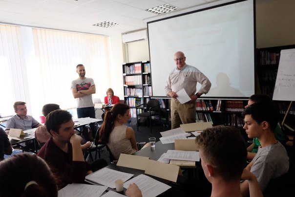 Представник Університету Ферфілд професор Девід Шмідт під час тренінгу.