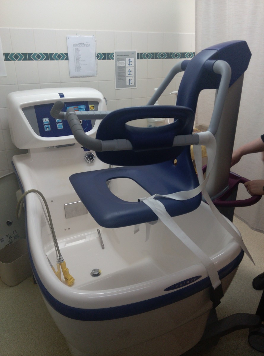 Ліфт-підйомник та ванна для купання для людей з обмеженими можливостями в будинку святого Джозефа для літніх людей, які потребують стороннього догляду, ((Ukrainian Sisters Of St. Joseph, Saskatoon)