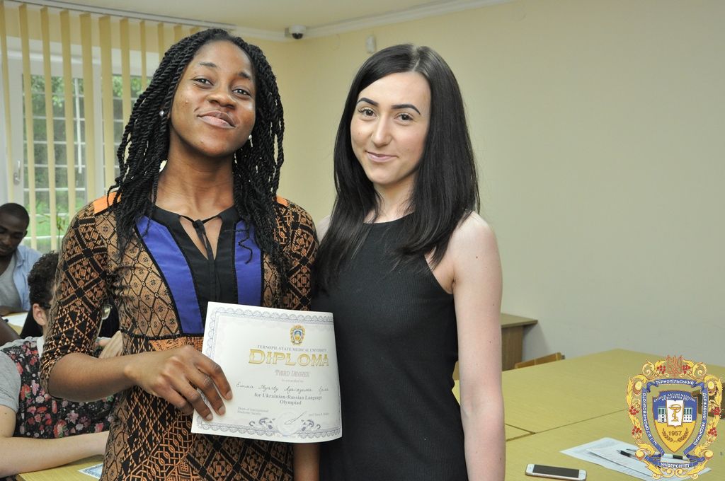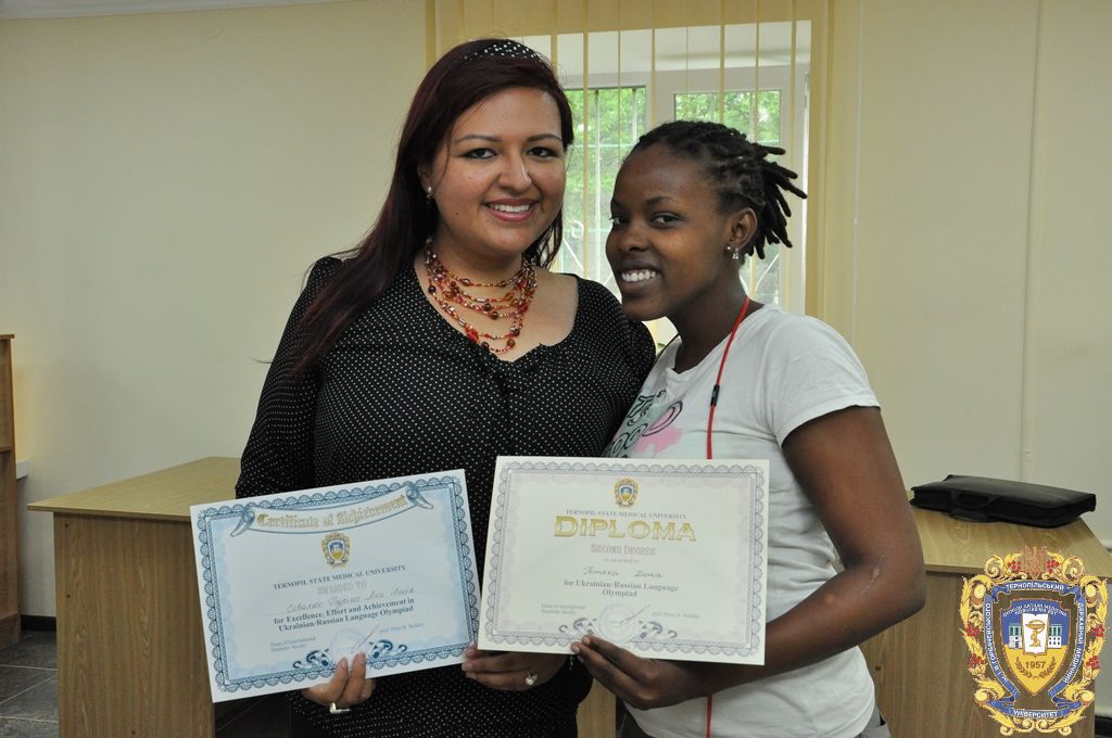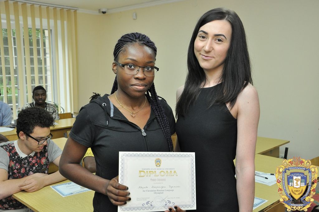 Хто має відповідальність, той упевнено прямує до своєї мети. Наприкінці навчання виникла ідея виявити найкращих. З 68 слухачів підготовчого відділення 10 заявило про участь в олімпіаді з української (російської) мови, яка відбулася 21 червня цього року. Бажання перевірити свій рівень знань виявили Севальос Родрігес Ана Люсія, Гатека Дона, Емма-Івуагву Адаіхуома Еріка, Аду Поку Аарон, Ассіліджое Максвелл, Абоузеід Кхалід Ахмед Елсаід Махмоуд, Ору Домінік Габріель, Нзех Онємуче Акібії, Авосан Вураола Рут та Нварібе Джералдін Чідімма.
