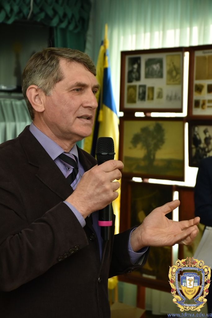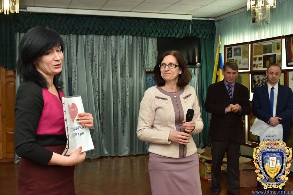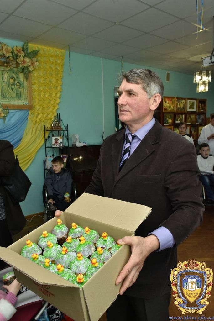 Зі святом Великодня присутніх привітав доцент кафедри філософії та суспільних наук, керівник науково-краєзнавчої студії «Терполяни» Леонід Кравчук, який зазначив, що в ТДМУ приділяють велику увагу благодійній діяльності.