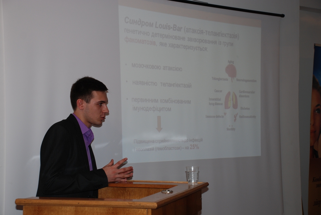 З цікавим випадком з практики, складними в діагностичному алгоритмі ознайомили аудиторію доцент Тетяна Ковальчук. Доцент Марія Кінаш представила доповідь про хвороби, які перебігають з порушенням репарації ДНК, до яких, зокрема, належать синдром Ніймегена та синдром атаксії-телеангіектазії. Цікавий клінічний випадок атаксії-телеангіектазії представив студент Віктор Міщанчук. Потрібно зазначити, що виступ Віктора Міщанчука на цьому заході був рекомендований комісію після блискучої доповіді на XXI Міжнародному медичному конгресі студентів та молодих вчених, який відбулася напередодні.