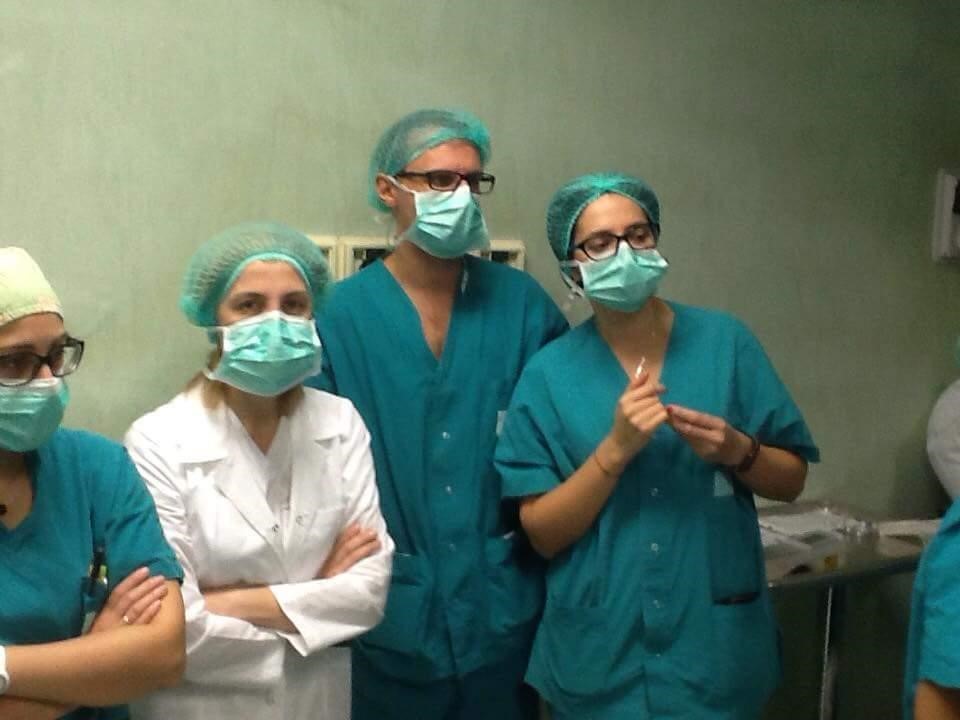 Під час оперативного втручання. З колегами із Грузії та Чехії, учасниця PhD-програми MEDEA Олена Бідованець.