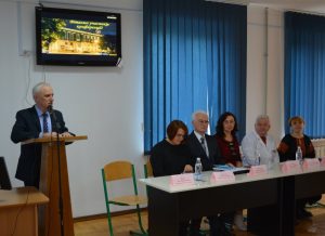 Зліва направо: проф. Кліщ І.М.(виступає), доц. Марущак М.І., проф.Бондаренко Ю.І., доц. Сатурська Г.С., проф. Гнатів В.В., проф. Денефіль О.В.