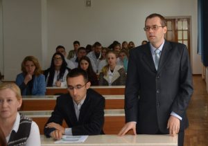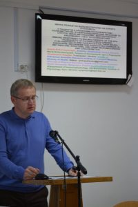 На фото зліва на право: проф. Бондаренко Ю.І. (ставить питання), Кульчинський А.Б.