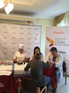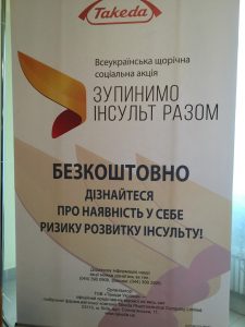 У рамках акції за технічної підтримки фармацевтичної компанії «Takeda» було проведено соцопитування з метою визначення рівня поінформованості населення про перші симптоми розвитку інсульту. Усім присутнім було роздано листівки, що містили інформацією про основні фактори ризику розвитку інсульту та методи профілактики.