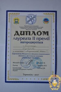 «Я стала лауреатом першої премії в номінації «Естрадний вокал» і радію з того, що мені вдалося вибороти призове місце для свого університету. Але на цьому робота не закінчилася, тому продовжую вдосконалюватися. Сподіваюся, що і надалі будуть організовувати такі фестивалі, адже на них можна багато чого навчитися, знайти нових друзів з інших університетів та просто послухати, наскільки талановитий і окрилений піснею наш народ!», – додала дівчина.