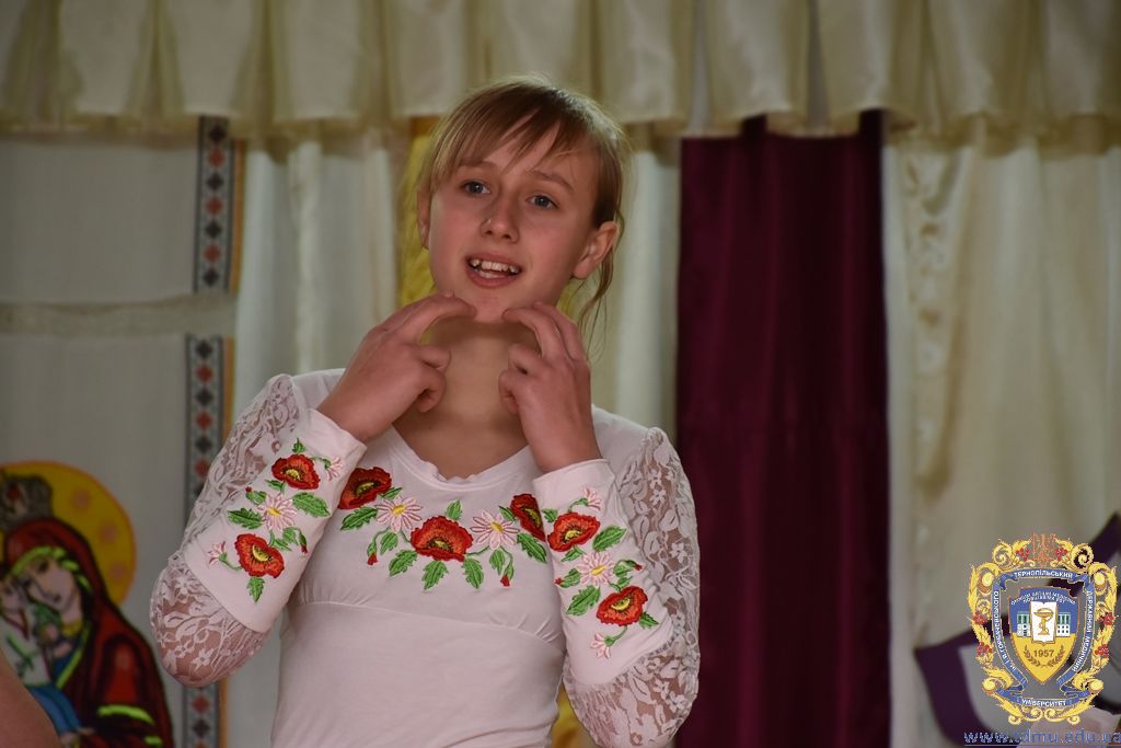 Українська народна пісня у виконанні студентки 4 курсу медичного факультету, бандуристки і співачки Лілі Іськів стала ліричним продовженням щирої розмови.  Зворушила всіх і пісня «Мальви», яку заспівала студентка 1 курсу стоматологічного факультету Яна Владика. Не менш яскравим був виступ студентки 6 курсу медичного факультету Віти Васильчук з піснею «Я у тебе одна». Зливу оплесків викликав й дует у складі Віти Васильчук і учениці навчально-реабілітаційного центру Наталі Марущак. Завдяки сурдоперекладу Наталі нечуючі глядачі краще зрозуміли  зміст слів,  відчути їх енергетику. Нікого не залишила байдужим й пісня «Коли співають діти» в жестовому виконанні  вихованців центру. Жартівлива сценка «Борщ», талановито зіграна старшокласниками, викликала веселий сміх і справжні овації. Як і артистично виконана пантоміма. Загалом, всі діти виступили прекрасно, продемонструвавши творчі здібності і невичерпність таланту. А на завершення пісню в сурдоперекладі  виконали педагоги центру.
