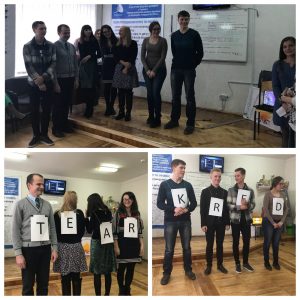Студенти 2 курсу 20-ї групи медичного факультету підготували та провели інтелектуально-розважальну гру «Хто зверху». У грі брали участь 2 команди по 4 учасники у кожній. Першу команду представляли студенти, іншу – викладачі. Командам зачитували англійською мовою дефініції до слів, вони з наявних у них літер складали правильну відповідь. Гра пройшла у веселій та творчій атмосфері, усі учасники намагалися якнайшвидше дати правильну відповідь. Переможцями конкурсу стала команда ініціативних та креативних студентів.