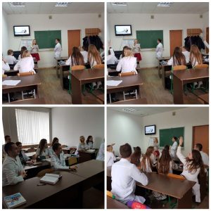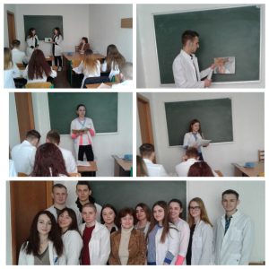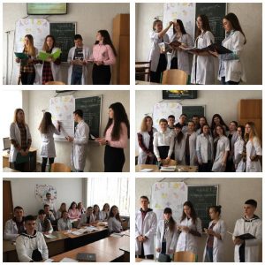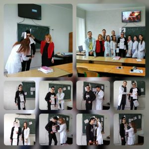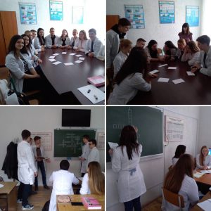 Доцент Корольова Т.В. разом зі студентами другого курсу 2-ї групи медичного факультету провели інтерактивне заняття з англійської мови за професійним спрямуванням на тему «Competition in small groups». Ця мотиваційна гра спонукала студентів до комунікативної активності. Її було використано для розгляду теми «Dermatitis». Студенти аналізували свої думки, перш ніж їх озвучувати, адже обов’язковим елементом дискусії було пояснення ходу власних думок.