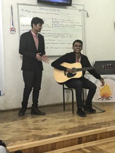 Зрозуміло без слів, що кожна нація має унікальні традиції, притаманні лише їй. Проте «Language is the key which opens the door of the world». Як кажуть англійці: «Мова – це ключ, який відкриває двері світу». Затамувавши подих, усі глядачі з задоволенням слухали попурі індійських пісень у виконанні студентів з Індії Мусле Вініт (43-а група першого курсу факультету іноземних студентів) та Ваібхав Тріпаті (47-а група першого курсу факультету іноземних студентів).