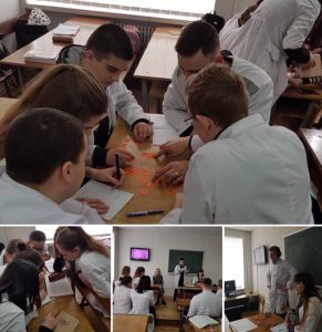 На занятті з латинської мови (викл. Коцюба Р.Б.) студентам було запропоновано відгадати хімічні елементи та кислоти. Водночас студенти виконували різні завдання у створених мікрогрупах і розгадували кросворд, присвячений темі заняття.