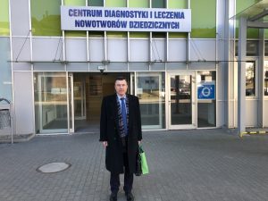 З професором Яном Любінським біля входу у відділення онкологічного генетичного консультування.