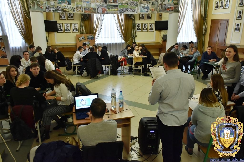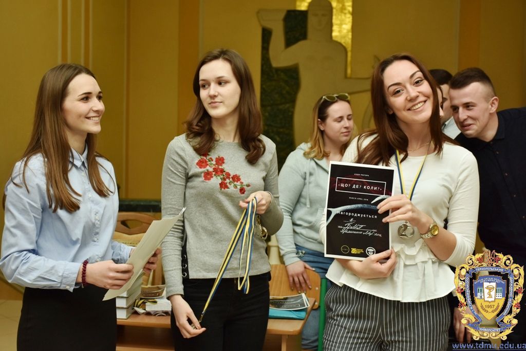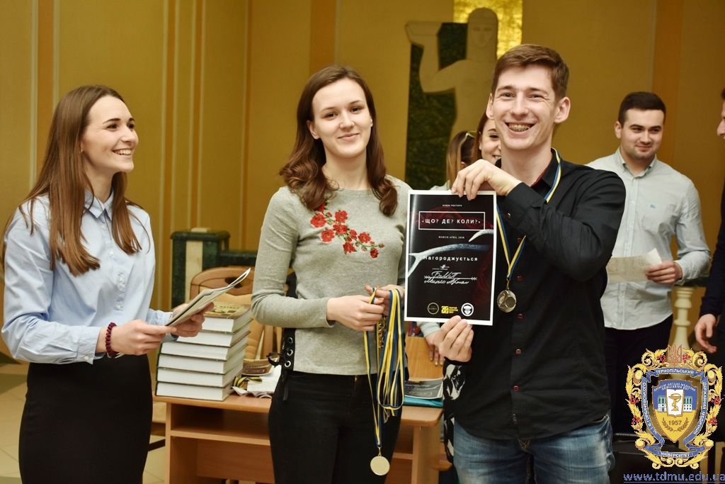 Напередодні Великодніх свят у Тернопільському державному медичному університеті імені І.Горбачевського завдяки активній роботі клубу інтелектуальних ігор відбувся перший чемпіонат з гри «Що? Де? Коли?». Нагадаємо, що наші студенти упродовж цього навчального року та в попередні роки постійно підтримують розвиток інтелектуальних ігор у виші. Це чудова альтернатива тематичному відпочинку.