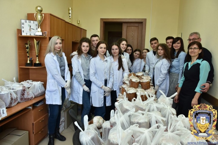 Щороку напередодні Воскресіння Христового адміністрація та профком Тернопільського державного медичного університету імені І.Горбачевського готують для військових в АТО гостинці. Таким чином ТДМУ виконує свою соціальну місію щодо турботи і допомоги тим, хто потребує підтримки. На передовій солдатам дуже важливо знати, що у всій Україні про них пам’ятають, цінують те, що інші можуть жити у мирі і спокої.