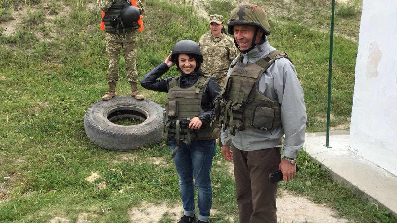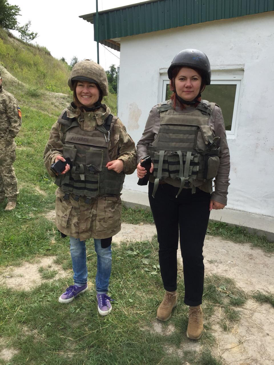 На фото проф.Вадзюк С.Н. і ас.Татарчук Л.В. підготовлені до стрільби з автомата.