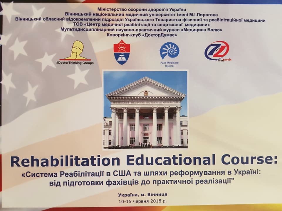 За підтримки Трастового фонду НАТО, Вінницького національного медичного університету імені М.Пирогова та низки організацій 10-15 червня 2018 року відбувся короткий навчальний курс з медичної реабілітації від американських спеціалістів для українських лікарів та інших фахівців, які працюють у напрямку реабілітації. Учасники отримали можливість навчатися протягом 6 днів у фахівців мультидисциплінарної реабілітаційної команди з США, які поділилися знаннями, матеріалами та практичним досвідом. Навчання передбачало проведення лекцій, майстер-класів, розбір клінічних випадків за участю пацієнтів.