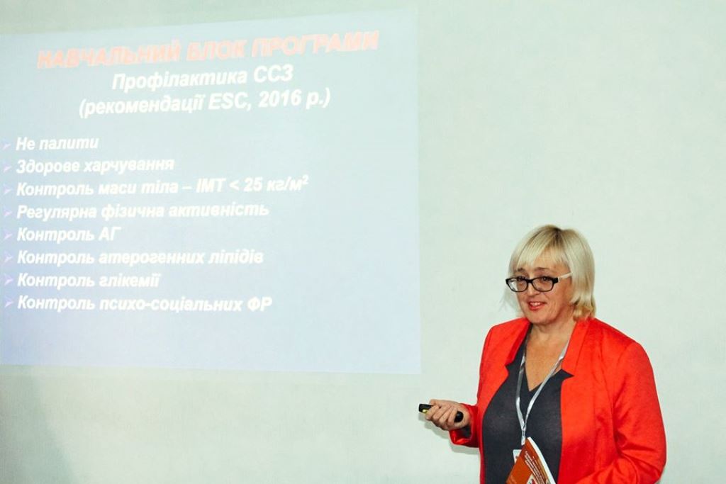 Доцент кафедри невідкладної та екстреної медичної допомоги Лариса Левицька представила доповідь «Досвід відновного лікування хворих на інфаркт міокарда з коморбідною патологією на етапах реабілітації» та презентувала нову монографію «Сучасні технології відновного лікування хворих із гострим коронарним синдромом».