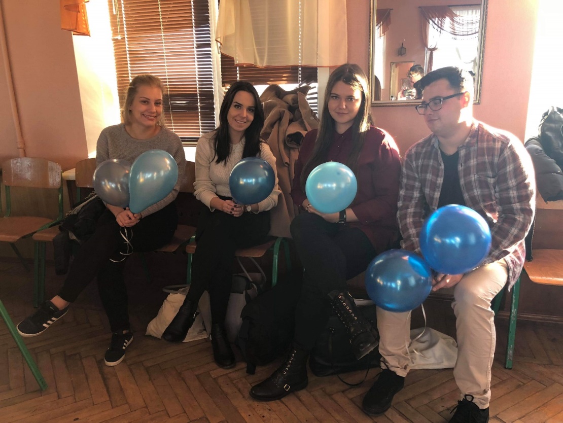 Група студентів польської асоціації ТДМУ на чолі з Хубертом Мікошою подарували дітям чудовий настрій і надувні кульки блакитного кольору, який є символічним для цього дня.