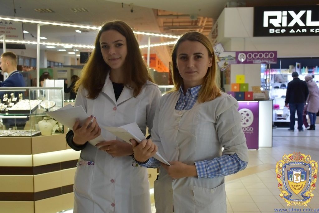 З нагоди Міжнародного дня сліпих студенти Тернопільського державного медичного університету імені І.Горбачевського Тетяна Карпяк, Тетяна Марчук, Валерія Петренко і Антоніна Круковець організували акцію з метою перевірки гостроти зору у жителів Тернополя.