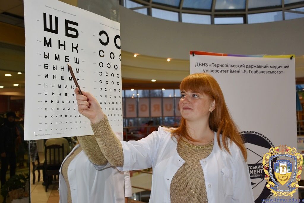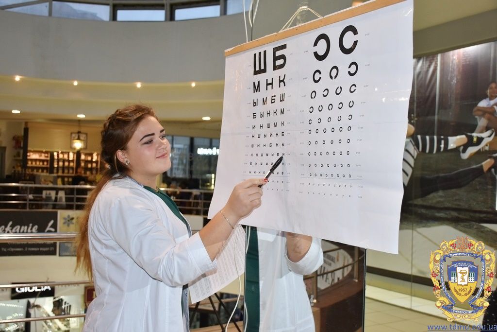 Цього дня усі бажаючі мали можливість перевірити гостроту зору. Потрібно сказати, що відвідувачі торгового центру «Орнава» з довірою ставилися до наших студентів і відважувалися перевірити зір. Якщо у когось з’ясовувалися проблеми, дівчата радили звернутися до фахівців.