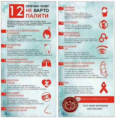 Майбутні медики об’єднали зусилля з викладачем англійської мови загальноосвітнього навчального закладу Юлією Марщук у підготовці до тематичного уроку про необхідність берегти здоров’я з раннього віку. Мова йшла про згубний вплив на організм людини такої шкідливої звички, як куріння. Наші студенти детально розповіли про те, чому взагалі не потрібно починати палити цигарки.