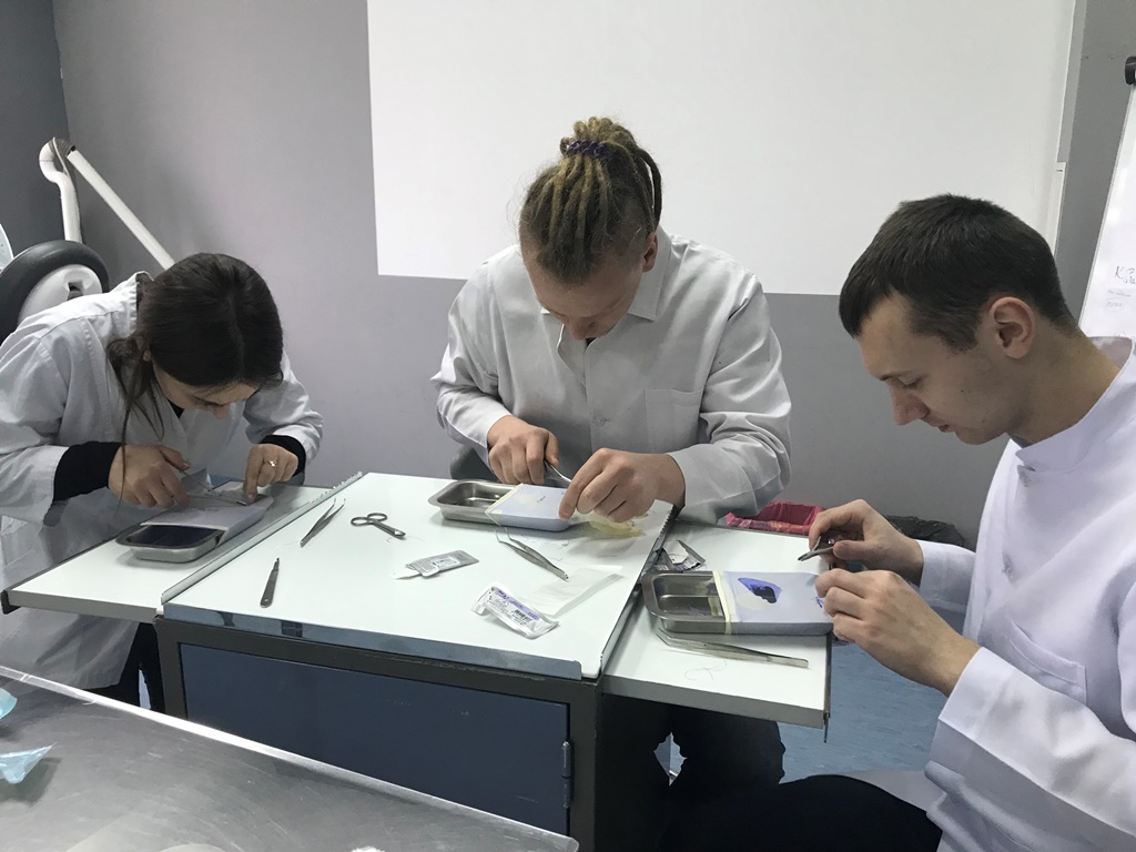 У відділі хірургічної стоматології вивчали вроцлавський метод проведення мандибулярної анестезії. Молоді люди були залучені до проведення таких хірургічних процедур: типового та атипового видалення зубів. На муляжі зшивали рани хірургічним шовним матеріалом і голкою. Вивчали методи шиття і особливості шовних матеріалів, які застосовуються в клініці.