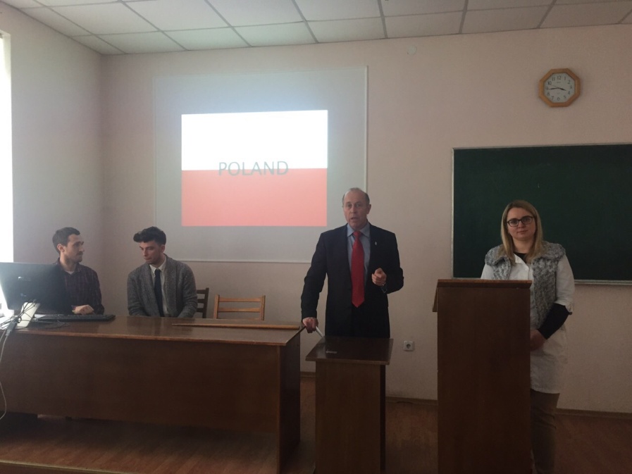 Були заслухані цікаві доповіді студентів 245 і 212 груп Ярошевського Роберта та Фушпаняк Томаша на тему «Культура, визначні місця та архітектурні пам’ятки Польщі». Аудиторію зацікавили представлені ними презентації про історико-географічне розташування, національні символи, особливості системи охорони здоров’я та традиції країни.