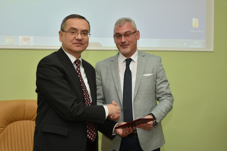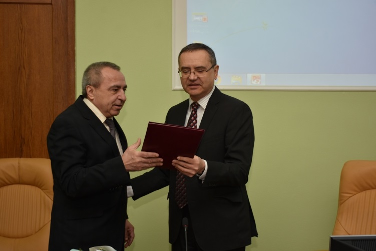 Перед початком засідання в урочистій обстановці ректор університету привітав професора Беденюка А.Д. з 60-літнім ювілеєм.