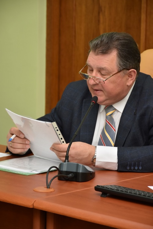 Інформацію про забезпечення кафедр та навчально-наукових інститутів університету науковою, навчальною апаратурою надав голова комісії з перевірки, проф. Вакуленко Дмитро Вікторович.