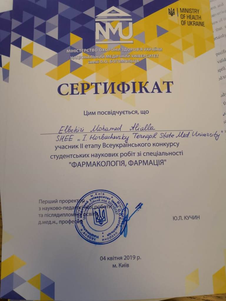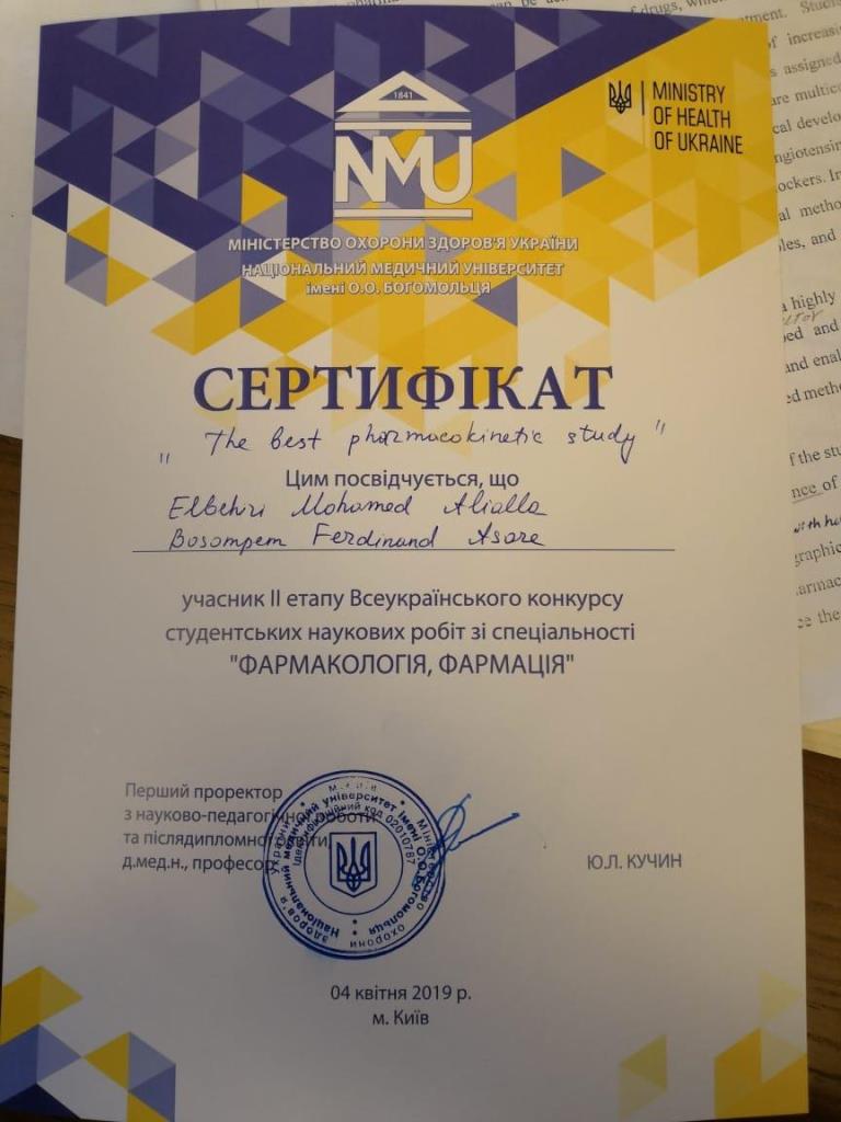 Наші студенти отримали диплом за найкращу роботу «The best pharmacokinetic study». Потрібно зазначити, що це новий досвід участі іноземних студентів Тернопільського державного медичного університету у всеукраїнських наукових конкурсах. Сподіваємося, що їхні наступники матимуть такий же науковий запал і представлятимуть ТДМУ на подібних заходах у наступні роки.