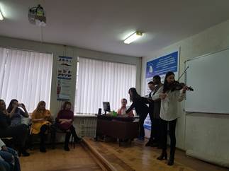 Витончену гру на скрипці чарівної мелодії Рольфа Роланда «Song from a secret garden» продемонструвала студентка 24-ї групи першого курсу медичного факультету Діана Савків.