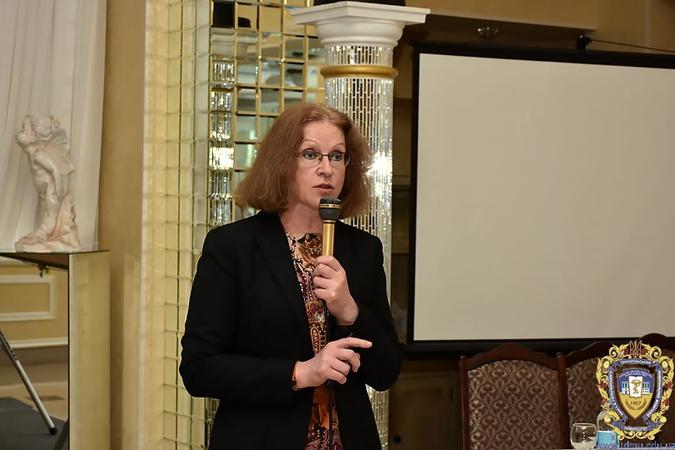 Вітання від ректора НМАПО, професора Юрія Вороненка передала голова Всеукраїнської асоціації дитячої імунології, професор НМАПО Людмила Чернишова.