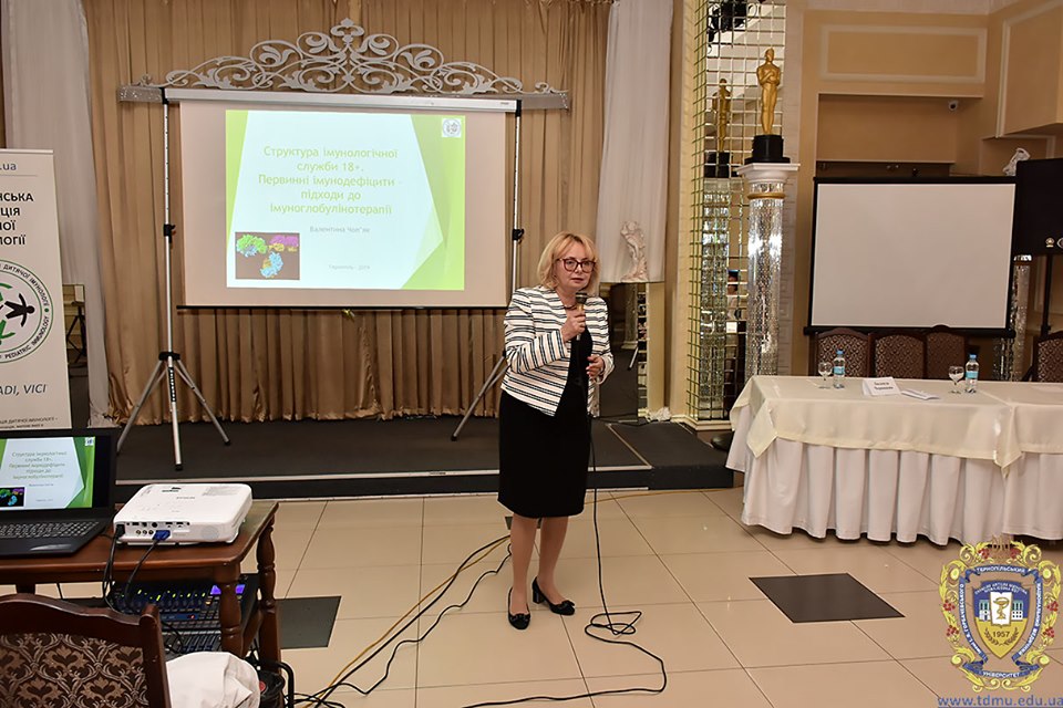 Завідувач кафедри клінічної імунології та алергології Львівського національного медичного університету імені Д.Галицького, професор Валентина Чоп’як представила доповідь «Структура дорослої імунологічної служби в Україні». Одним з завдань цього наукового симпозіуму було розробити шлях передачі дитячого населення до дорослих імунологів. Завдяки спільним зусиллям лікарів-імунологів та ГО «Рідкісні імунні захворювання» у 2019 році вперше вдалося добитися державних закупівель імуноглобулінів для дорослого населення. Щороку з покращенням діагностики ПІД, зростає і частка дорослого населення з ПІД, які потребують замісної терапії.