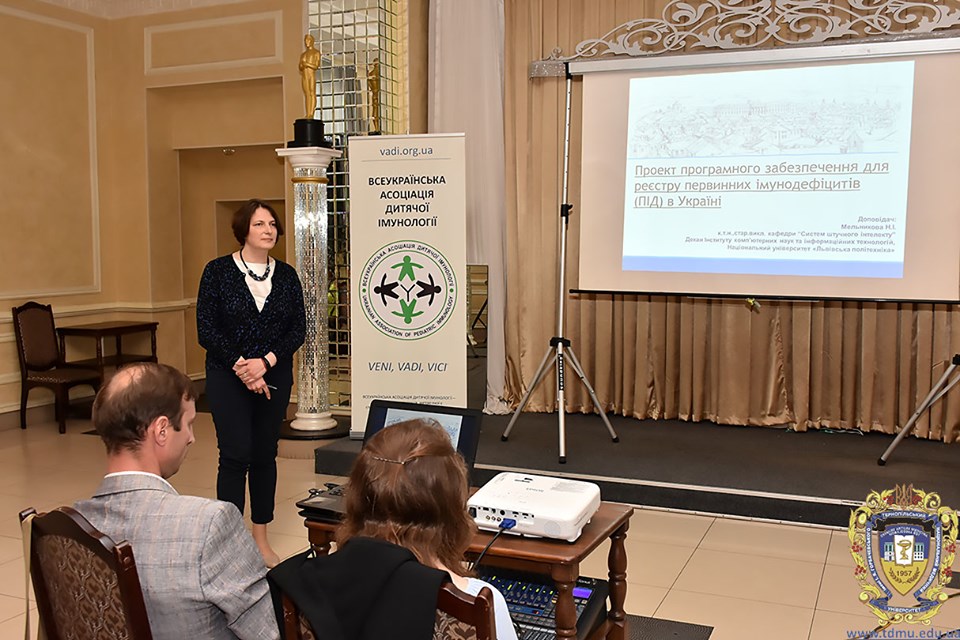 Асистент кафедри систем штучного інтелекту Інституту комп’ютерних наук та інформаційних технологій Національного університету «Львівська політехніка» Наталія Мельнікова від групи науковців представила проект програмного забезпечення для реєстру первинних імунодефіцитів в Україні.