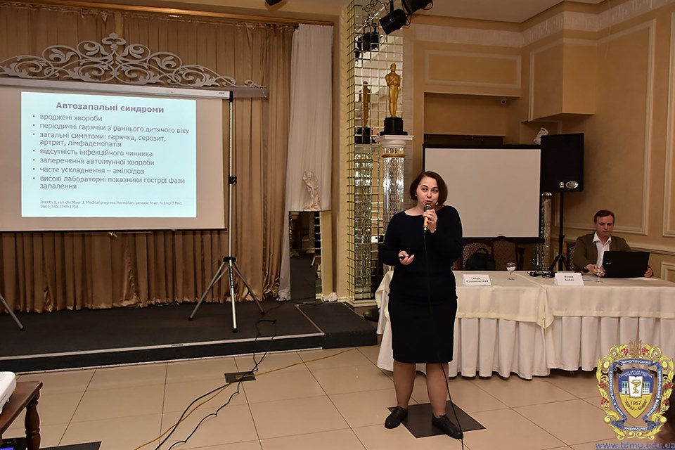 Завідувач кафедри дитячих хвороб з дитячою хірургією ТНМУ, професор Оксана Боярчук представила доповідь «Первинні імунодефіцити у Тернопільській області».