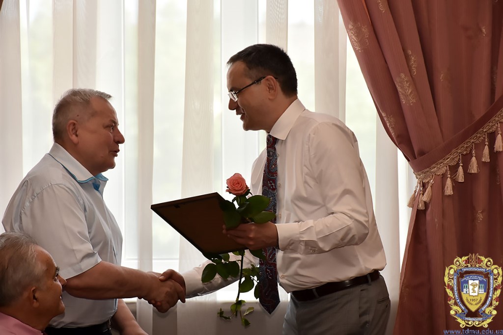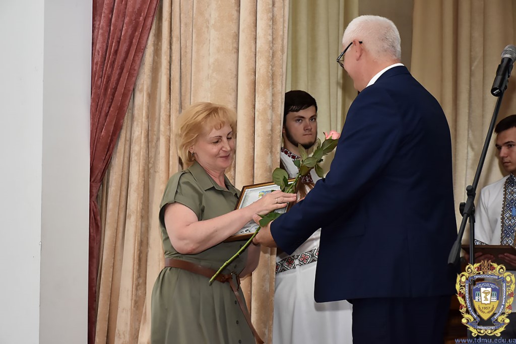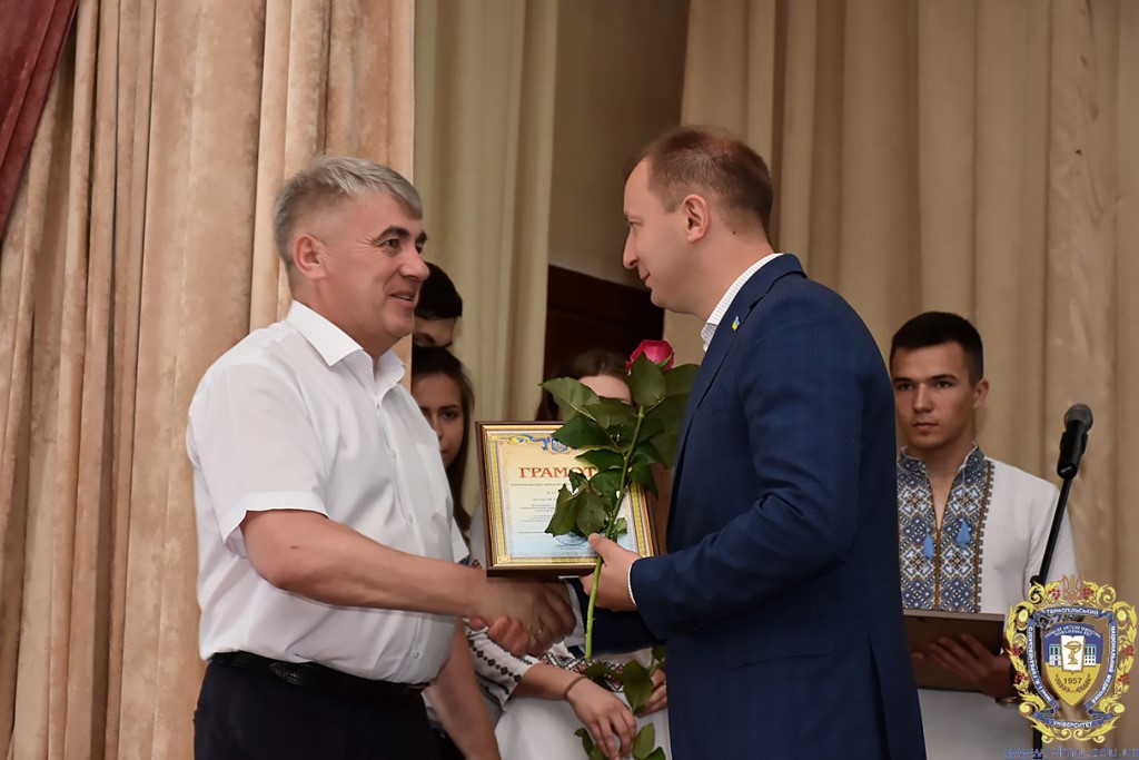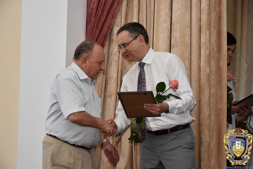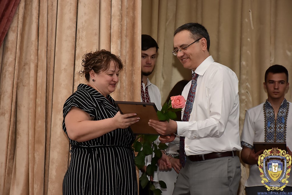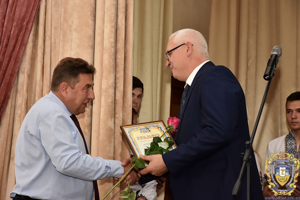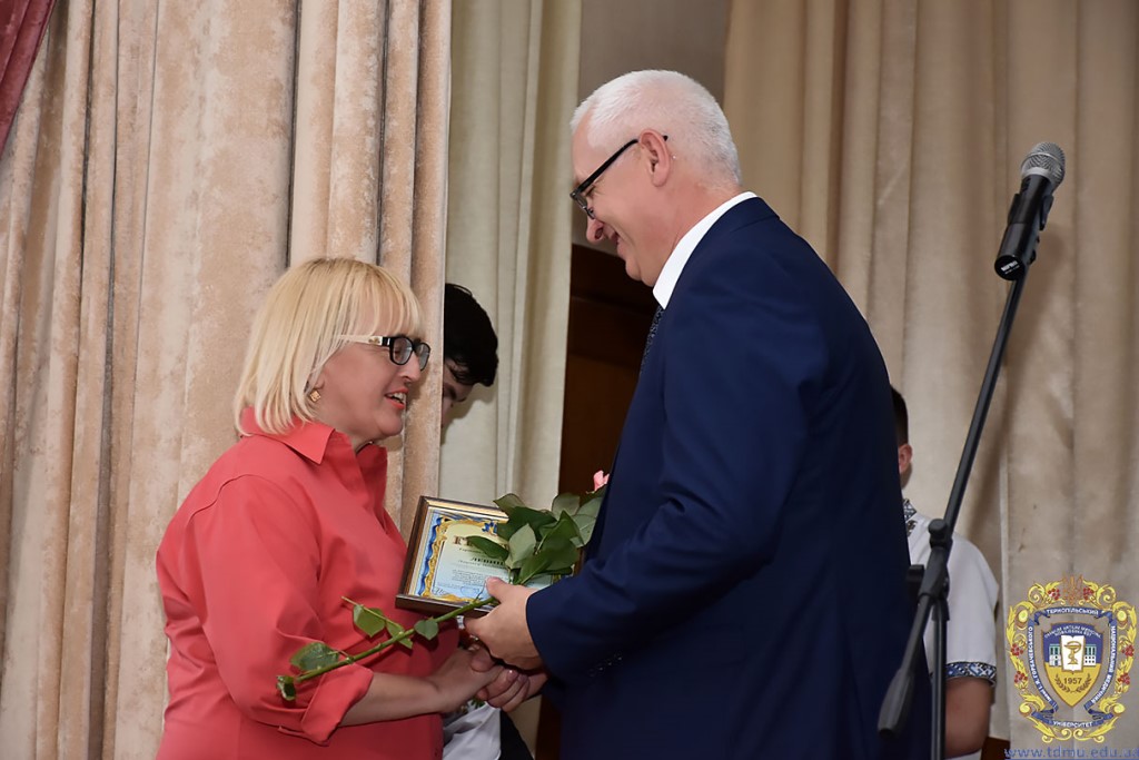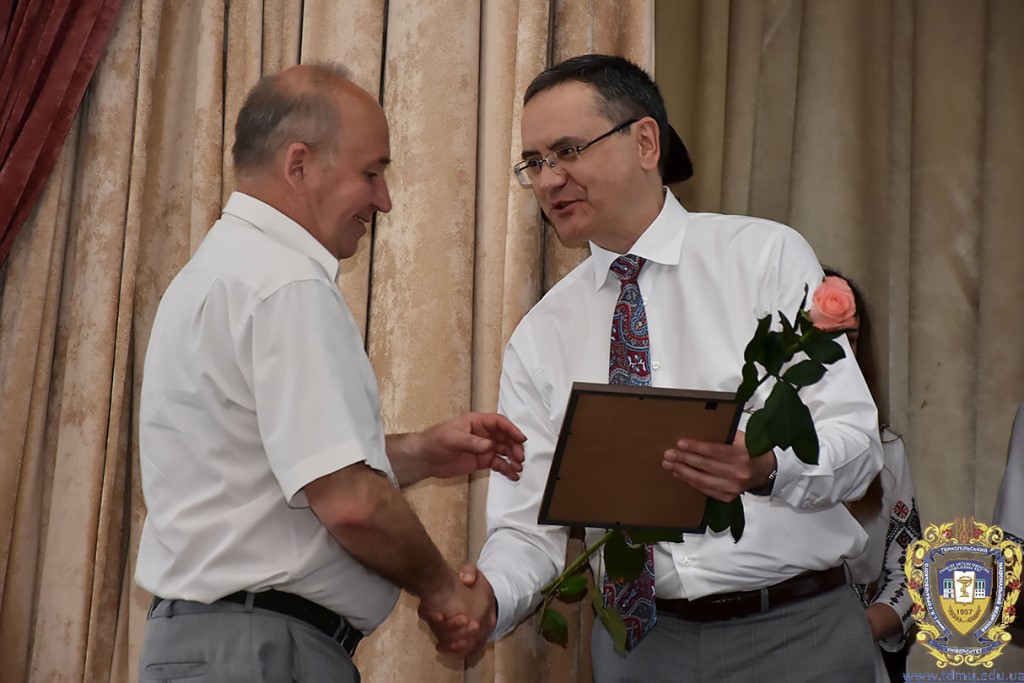 Ректор ТНМУ, професор Михайло Корда за багаторічну сумлінну працю, високий професіоналізм, активну громадську позицію з нагоди Дня медичного працівника відзначив працівників вишу. Грамоти отримали Боднар Ярослав Ярославович – завідувач кафедри патологічної анатомії з секційним курсом та судовою медициною; Бондаренко Юрій Іванович – професор кафедри патологічної фізіології; Вакуленко Людмила Олексіївна – доцент кафедри фізичної терапії, ерготерапії та фізичного виховання; Герасимюк Ілля Євгенович –завідувач кафедри анатомії людини; Гнатюк Михайло Степанович – завідувач кафедри оперативної хірургії та клінічної анатомії; Гудима Арсен Арсенович – завідувач кафедри медицини катастроф і військової медицини; Завіднюк Юрій Вікторович – асистент кафедри медичної реабілітації; Зятковська Неоніла Євгенівна – доцент кафедри фізіології з основами біоетики і біобезпеки; Климнюк Сергій Іванович – завідувач кафедри мікробіології; Кондратюк Володимир Андрійович –професор кафедри загальної гігієни та екології; Криницька Інна Яківна – професор кафедри функціональної і лабораторної діагностики; Олещук Леся Михайлівна – завідувач кафедри фармакології з клінічною фармакологією; Паламарчук Анатолій Іванович – інспектор навчального відділу; Федонюк Лариса Ярославівна – завідувач кафедри медичної біології; Фіра Людмила Степанівна – завідувач кафедри фармації навчально-наукового інституту медсестринства; Чорномидз Андрій Васильович – старший викладач кафедри фармакології з клінічною фармакологією; Якубишина Лідія Василівна – доцент кафедри гістології та ембріології.