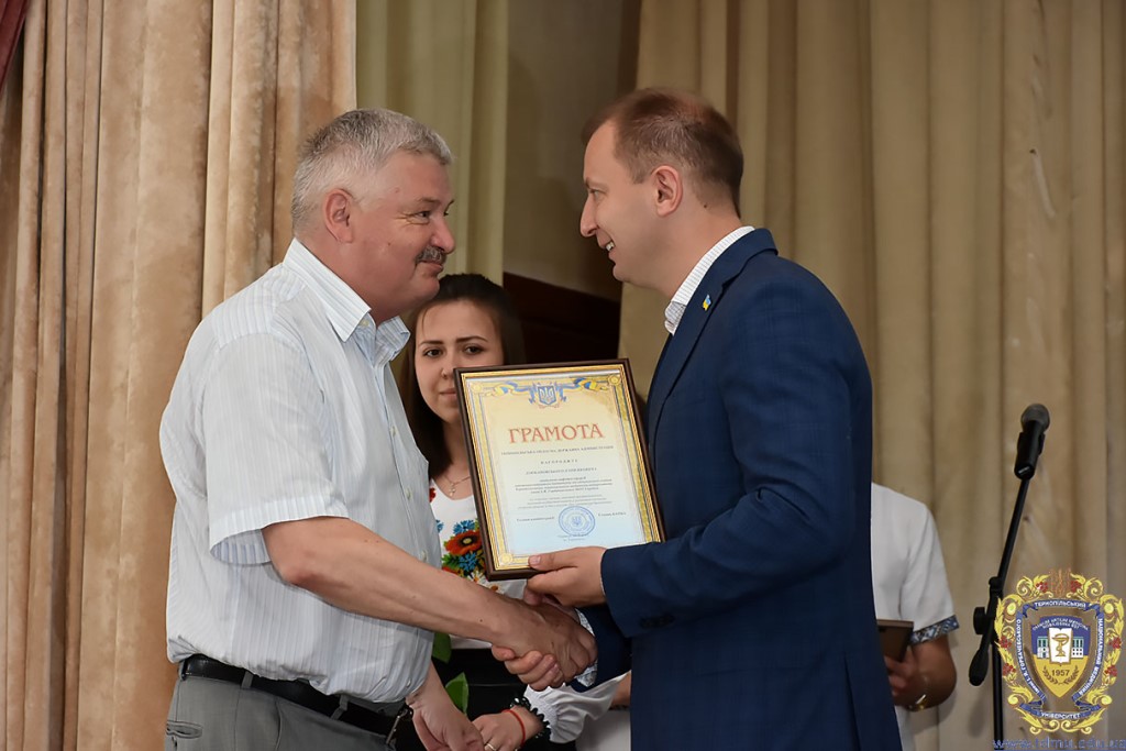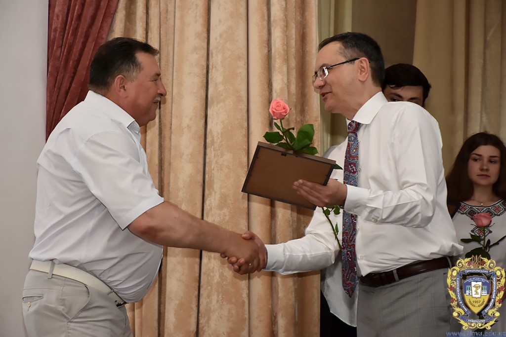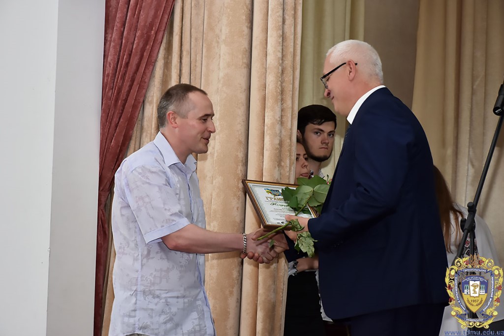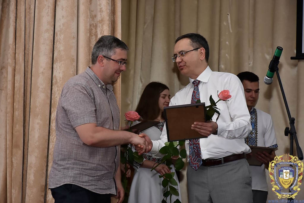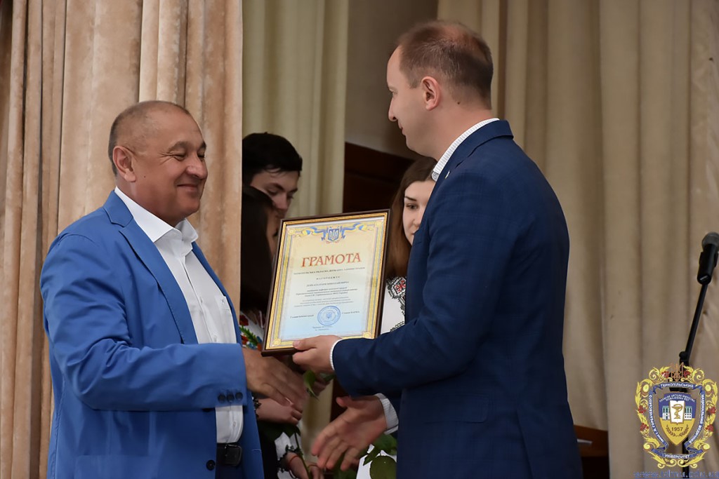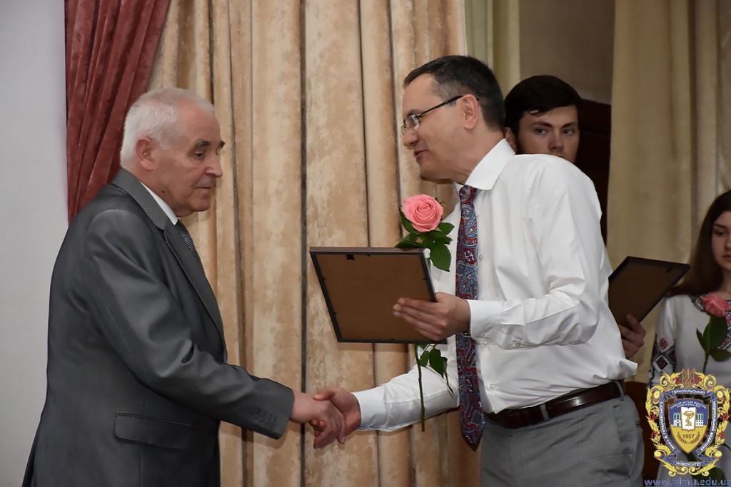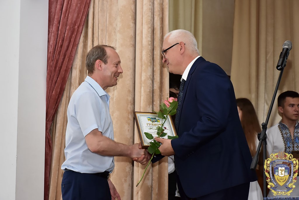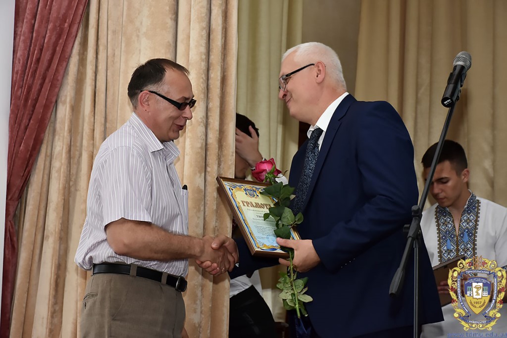 Ректор ТНМУ, професор Михайло Корда за багаторічну сумлінну працю, високий професіоналізм, активну громадську позицію з нагоди Дня медичного працівника відзначив працівників вишу. Грамоти отримали Боднар Ярослав Ярославович – завідувач кафедри патологічної анатомії з секційним курсом та судовою медициною; Бондаренко Юрій Іванович – професор кафедри патологічної фізіології; Вакуленко Людмила Олексіївна – доцент кафедри фізичної терапії, ерготерапії та фізичного виховання; Герасимюк Ілля Євгенович –завідувач кафедри анатомії людини; Гнатюк Михайло Степанович – завідувач кафедри оперативної хірургії та клінічної анатомії; Гудима Арсен Арсенович – завідувач кафедри медицини катастроф і військової медицини; Завіднюк Юрій Вікторович – асистент кафедри медичної реабілітації; Зятковська Неоніла Євгенівна – доцент кафедри фізіології з основами біоетики і біобезпеки; Климнюк Сергій Іванович – завідувач кафедри мікробіології; Кондратюк Володимир Андрійович –професор кафедри загальної гігієни та екології; Криницька Інна Яківна – професор кафедри функціональної і лабораторної діагностики; Олещук Леся Михайлівна – завідувач кафедри фармакології з клінічною фармакологією; Паламарчук Анатолій Іванович – інспектор навчального відділу; Федонюк Лариса Ярославівна – завідувач кафедри медичної біології; Фіра Людмила Степанівна – завідувач кафедри фармації навчально-наукового інституту медсестринства; Чорномидз Андрій Васильович – старший викладач кафедри фармакології з клінічною фармакологією; Якубишина Лідія Василівна – доцент кафедри гістології та ембріології.