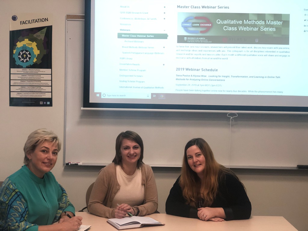 За участі Кристини Шумка (Christine Shumka) були залучені до дискусії під час вебінару з організації та проведення якісних досліджень, який проводився співробітниками університету Джорджії (Афіни, США) за сприяння та у співпраці з університетом Альберти.