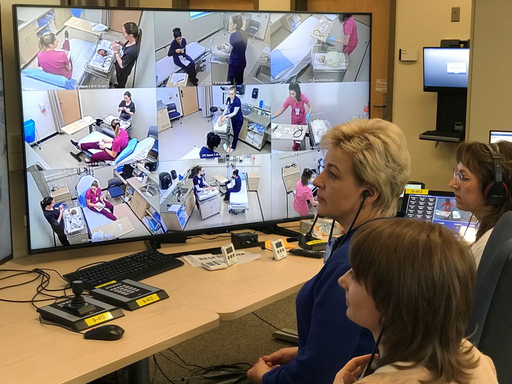 Учасники делегації ТНМУ ознайомилися з роботою та особливостями проведення навчання і екзаменів на базі симуляційного центру. Доценти Ястремська С.О. та Мазур Л.П. взяли безпосередню участь у двох заняттях в симуляційному центрі. На практичному занятті за участі стандартизованих пацієнтів студенти-медсестри працювали у командах за розробленим працівниками Центром симуляційного навчання сценарієм. Проводилися відеозаписи та подальше обговорення дій команд при роботі з пацієнтом (дебрифінг). Симуляційне заняття з неонатології проводилося на попередньо запрограмованих інтерактивних манекенах, при цьому студенти робили перший медсестринський огляд новонародженої дитини.
