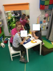 Daniela Kowalicka працює з пацієнтом, залучивши до заняття його рідну сестричку.